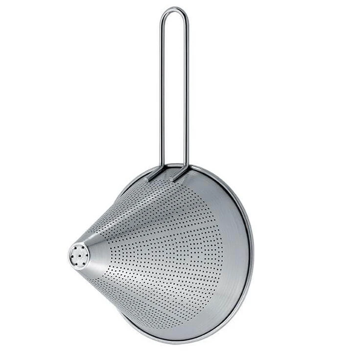De Cristel puntzeef, of chinois, is vervaardigd van roestvrij staal en past in de serie Panoply. De zeef heeft een diameter van 18 cm, is 16,2 cm hoog en 38,7 cm lang. Een puntzeef kunt u gebruiken voor het zeven van bijvoorbeeld sauzen. De saus zal door de vorm in een straal in de pan terecht komen.