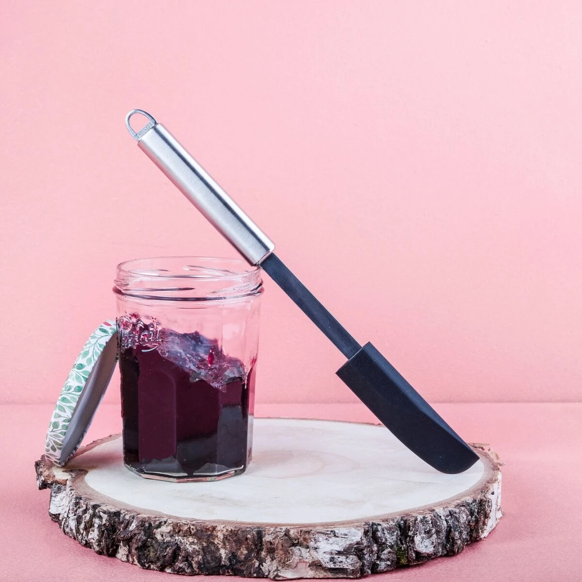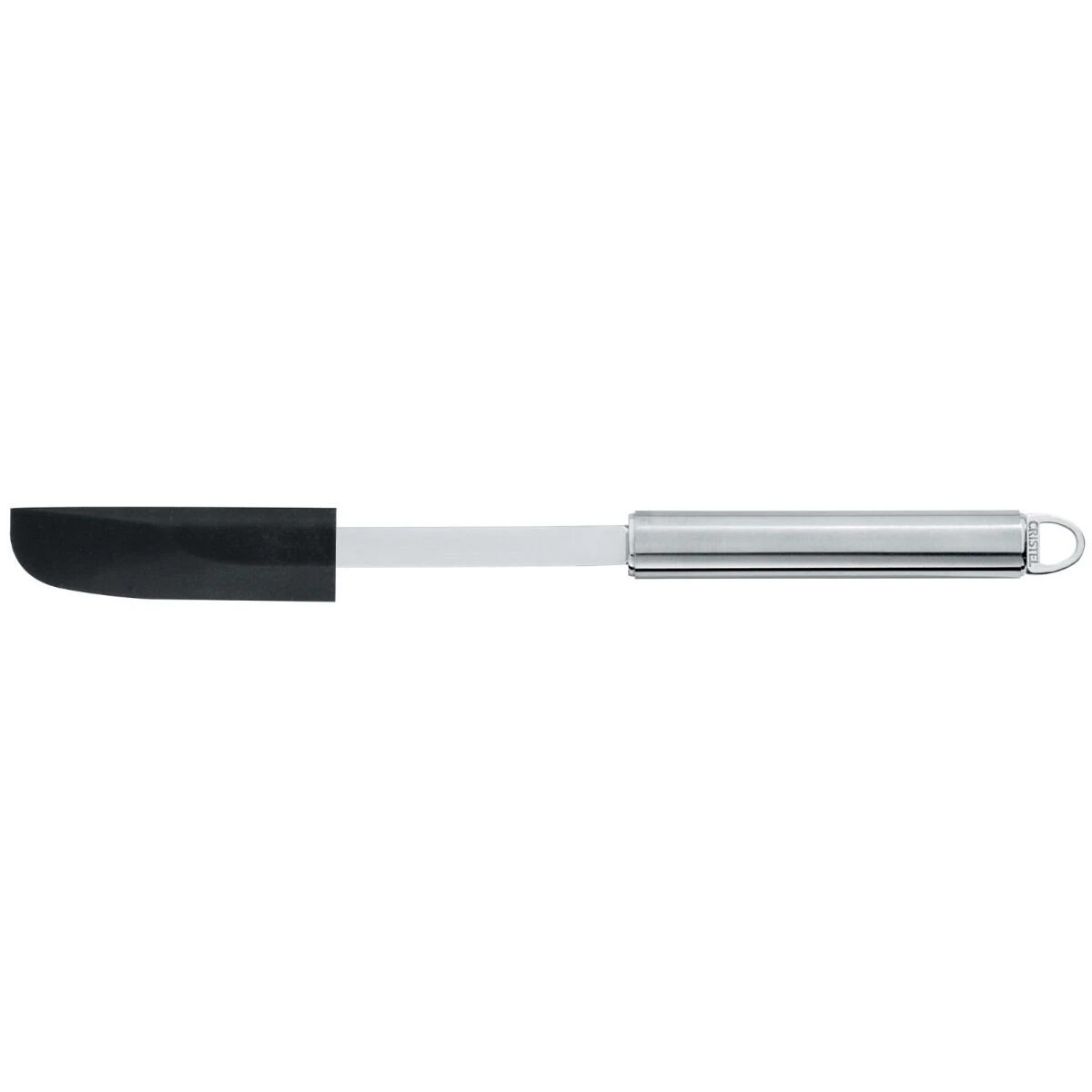 De Cristel Panoply spatel is gemaakt van geborsteld roestvrij staal en heeft een silicone spatel. De totale spatel heeft een lengte van 28,5 cm en is 1,5 cm breed. De spatel is hittebestendig tot 210°C. De flexibele spatel is ideaal voor gebruik in kommen of bijvoorbeeld voor het leegmaken van potten of flessen. Door het oog aan de handgreep is de spatel na gebruik op te hangen.