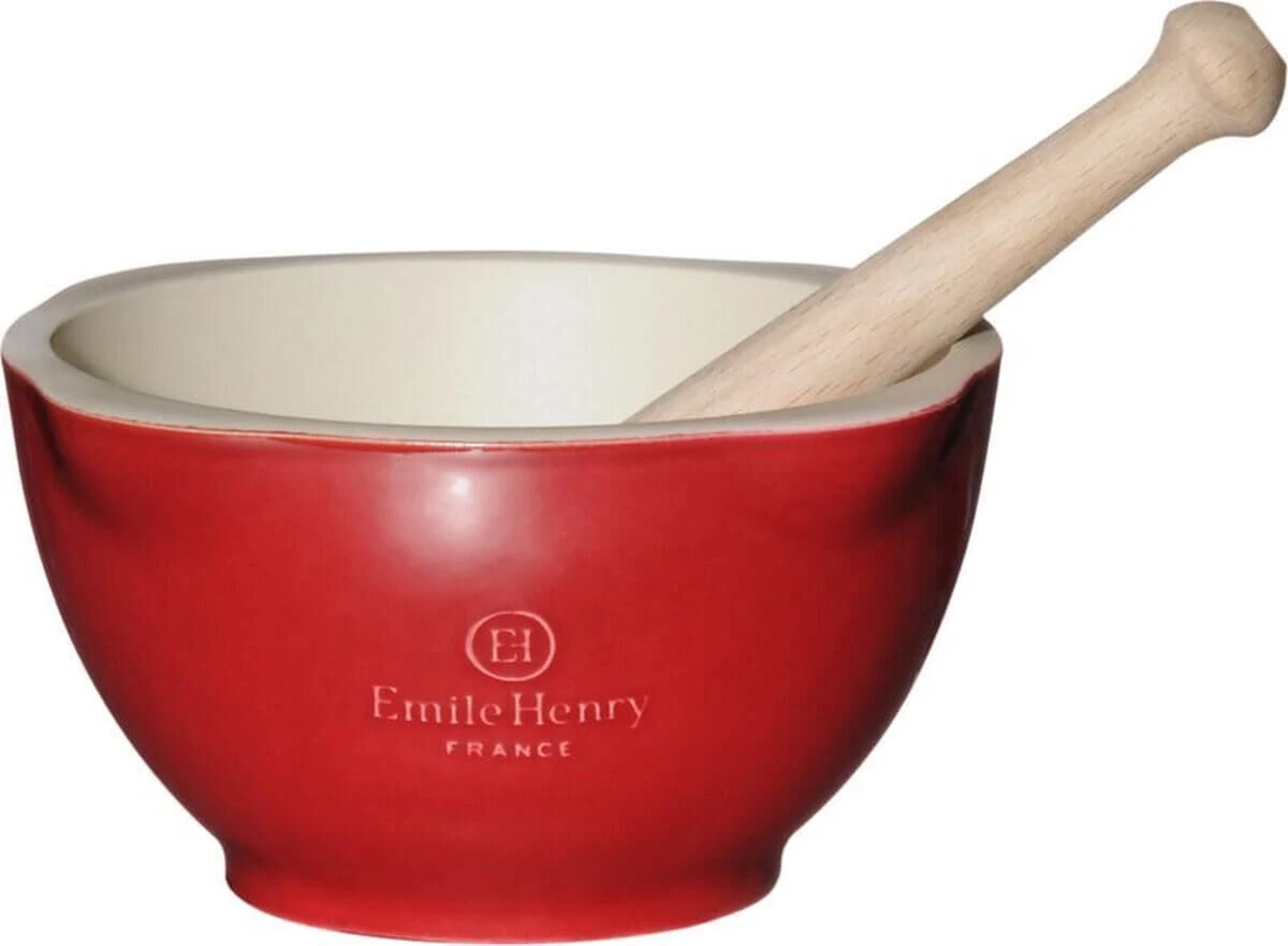 De vijzel van Emile Henry is gemaakt van rood keramiek en heeft een diameter van 14 cm. De vijzel is gemaakt van vlekvrij keramiek en de houten stamper ligt goed in de hand. De vijzel kan worden schoongemaakt in de vaatwasmachine, maar de stamper met keramieken kop dient te worden gereinigd met een vochtige doek.