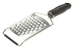 De Microplane Professional rasp is gemaakt van roestvrij staal en heeft een totale lengte van 32 cm. De rasp heeft een extra grof profiel voor het raspen van kaas, aardappelen en kool. Het raspoppervlak is 13 x 11 cm.