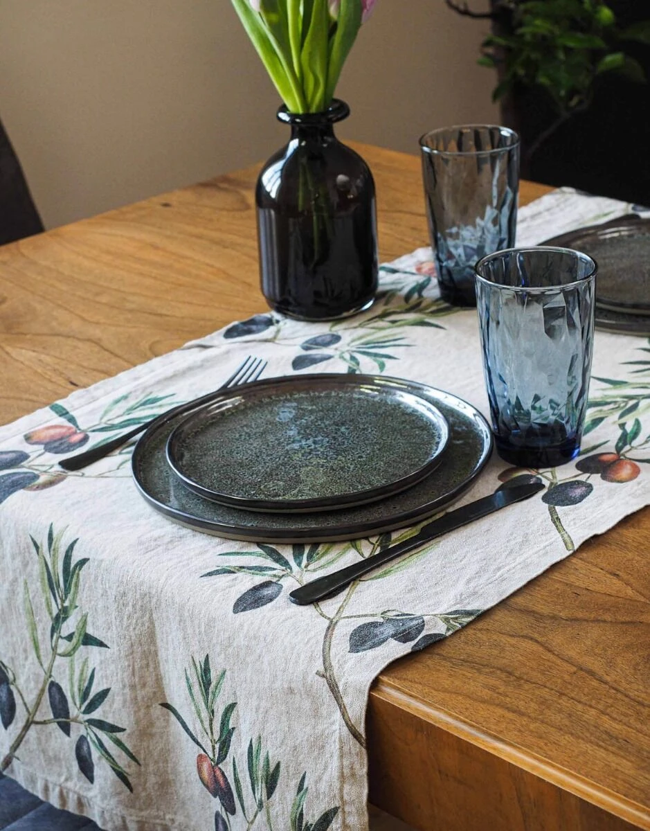 De Oldenhof Olives tafelloper is gemaakt van eco-vriendelijk linnen en is uitgevoerd in de kleur beige met zwarte olijven. De tafelloper heeft een lengte van 136 cm en is 46 cm breed. Gebruik de tafelloper op tafel ter decoratie en als ondergrond voor tafelgerei en servies.
