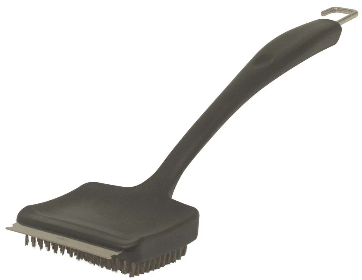 De barbecueborstel van The Bastard is vervaardigd uit kunststof met roestvrijstalen borstelharen, ophanghaak en schraper. De borstel is in totaal 50 cm lang, waarvan de borstelkop 14 x 12,5 x 3,5 cm groot is (l x b x h). Gebruik de borstelkop met stalen haren en een schraper voor het reinigen van uw barbecuerooster.