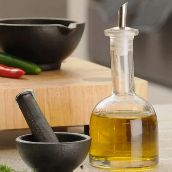 Met de glazen Typhoon oliekan bewaart en serveert u uw kostbare olijfolie op zeer luxe wijze. De kan ziet er niet alleen prachtig uit, hij zorgt er tevens voor dat de olie langer zijn smaak en voedingsstoffen behoudt. De kan heeft een inhoud van 280 ml en is voorzien van een unieke roestvrijstalen, lekvrije schenktuit. Gebruik de Typhoon oliekan voor het doseren en serveren van (olijf)olie.